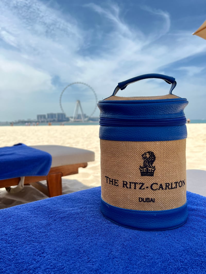 We had the privilege of settling on the private beach that leaves nothing to chance: cozy sun loungers, turquoise waters to refresh yourself, a breathtaking view of Ain Dubai - the largest observation wheel in the world. And to top it all off, a small cooler bearing the hotel's logo, filled with refreshing water. In short, an idyllic setting to relax and enjoy a few hours of serenity!