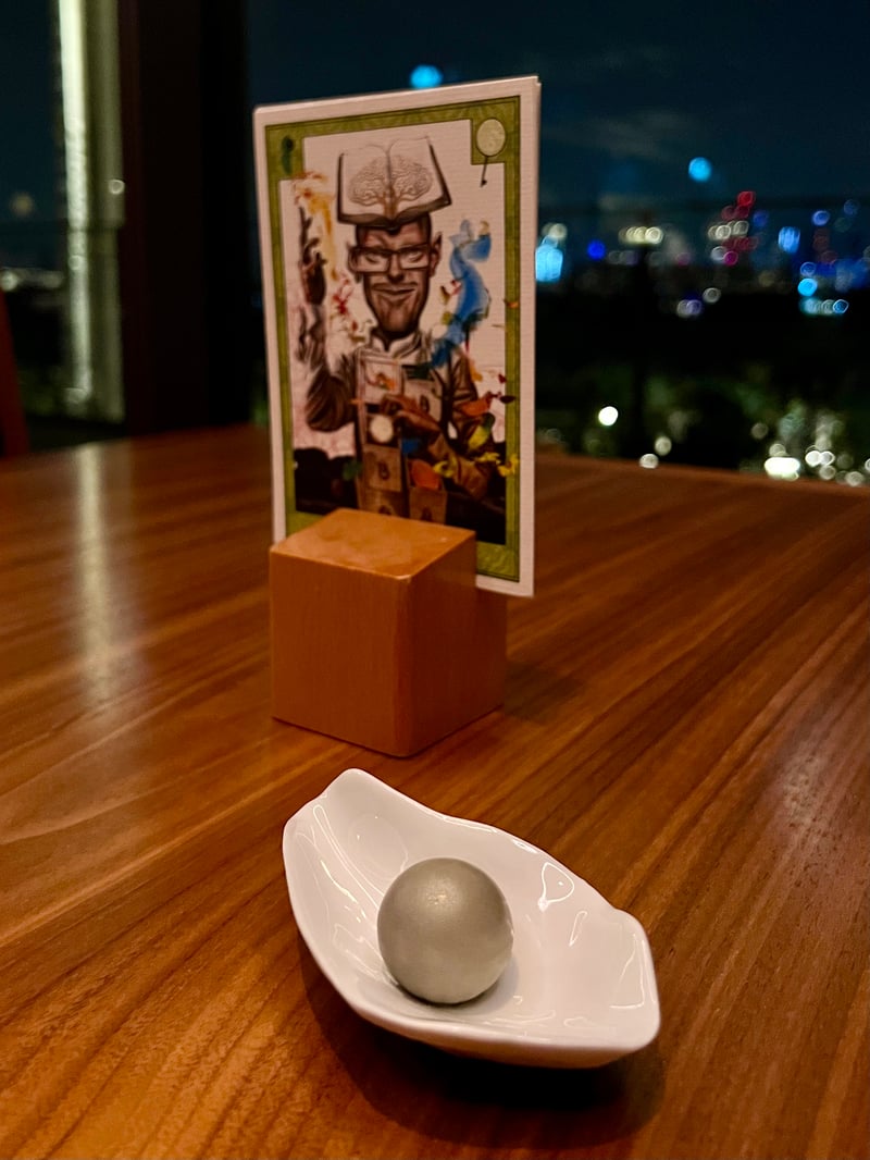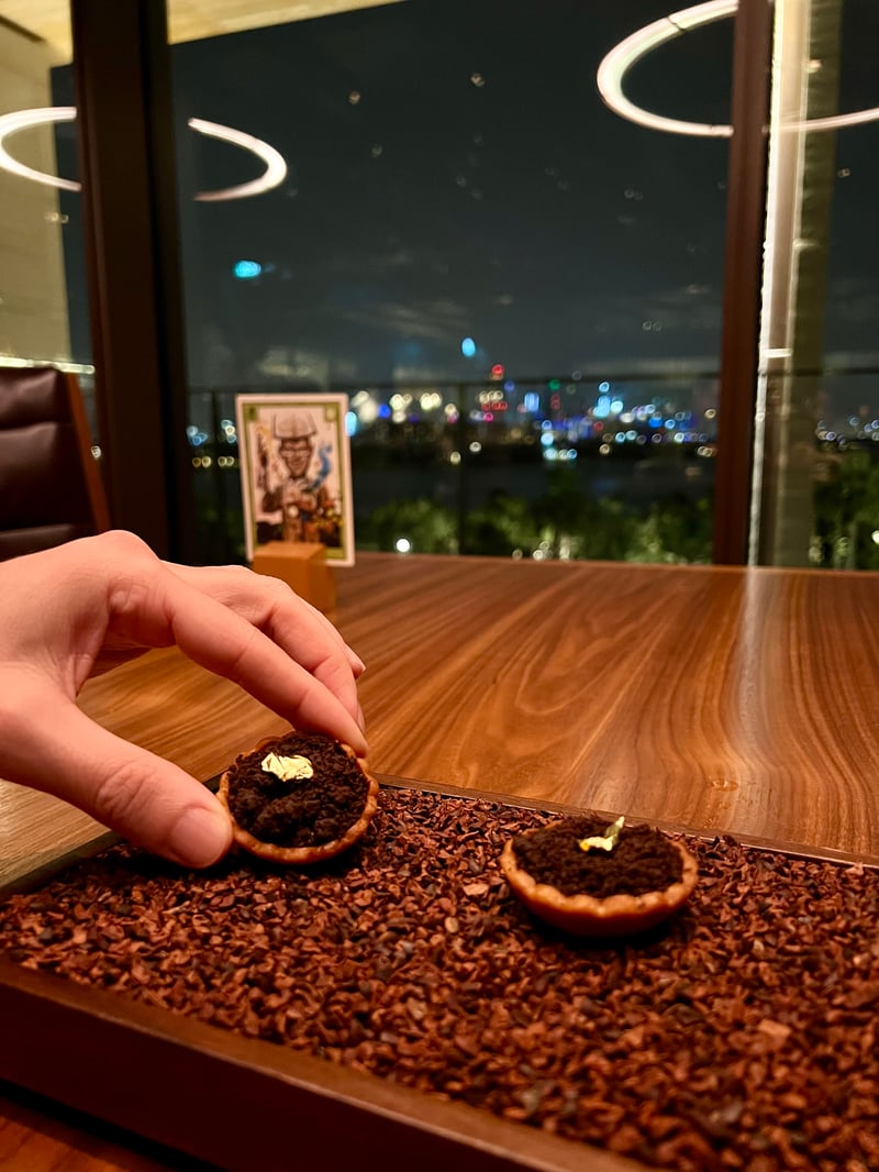Dinner by Heston Blumenthal is a true culinary odyssey, brilliantly combining British historical tradition with the contemporary sparkle of Dubai. Comfortably seated at a table with a breathtaking view of the fountains, we chose the tasting menu. Our culinary adventure began with a bold white chocolate and caviar pearl, a tasty tribute to the history of the Emirates, which skillfully married the sweetness of chocolate with the salinity of caviar. This delicate appetizer set the stage for a memorable evening.