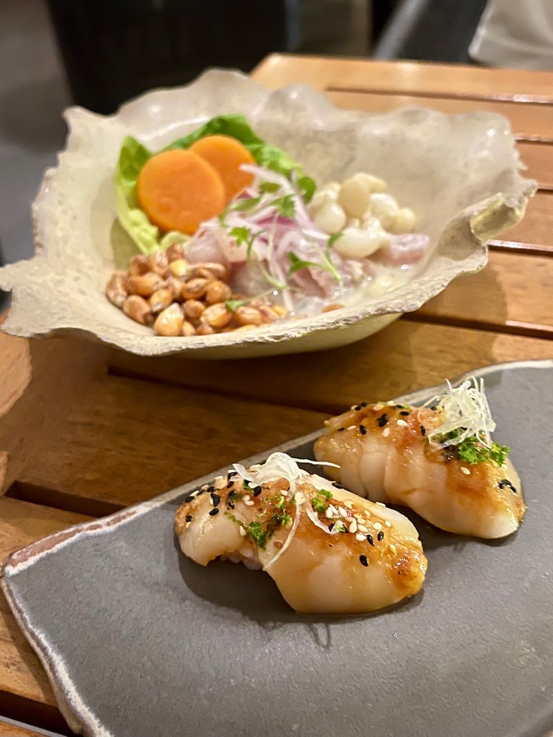 We started our appetizers with the Ceviche Clásico, a true pillar of Peruvian gastronomy. The catch of the day was marinated in a classic leche de tigre—zesty and tangy—accompanied by crispy corn, sweet potato, white corn, and finely sliced red onions. A dish that was both vibrant and balanced. In a more fusion style, the Nigiri Butter Miso showcased Hokkaido scallops, lightly torched, topped with miso butter and sprinkled with sesame. Each bite melted in the mouth, blending umami with briny sweetness.