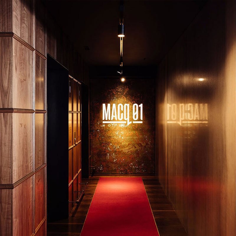 A long, wood-paneled structure commands Macquarie Wharf, its 114 rooms dressed in bright, understated tones that wisely defer to the harbor panorama beyond. The most coveted accommodations open onto private balconies facing the docks, where evening light plays across the water. Below, a restaurant and two moody bars in dark finishes draw guests for sunset drinks as fishing boats return to port.
