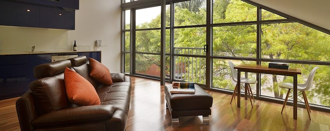 Perched above Macquarie Street, this rooftop apartment delivers Hobart's most refined private accommodation. Panoramic views stretch across the harbor and Mount Wellington from every corner of the open-air terrace, where an outdoor soaking tub awaits after evenings spent exploring the city's galleries and cocktail bars. The adults-only policy ensures undisturbed seclusion for couples seeking a sophisticated urban escape.