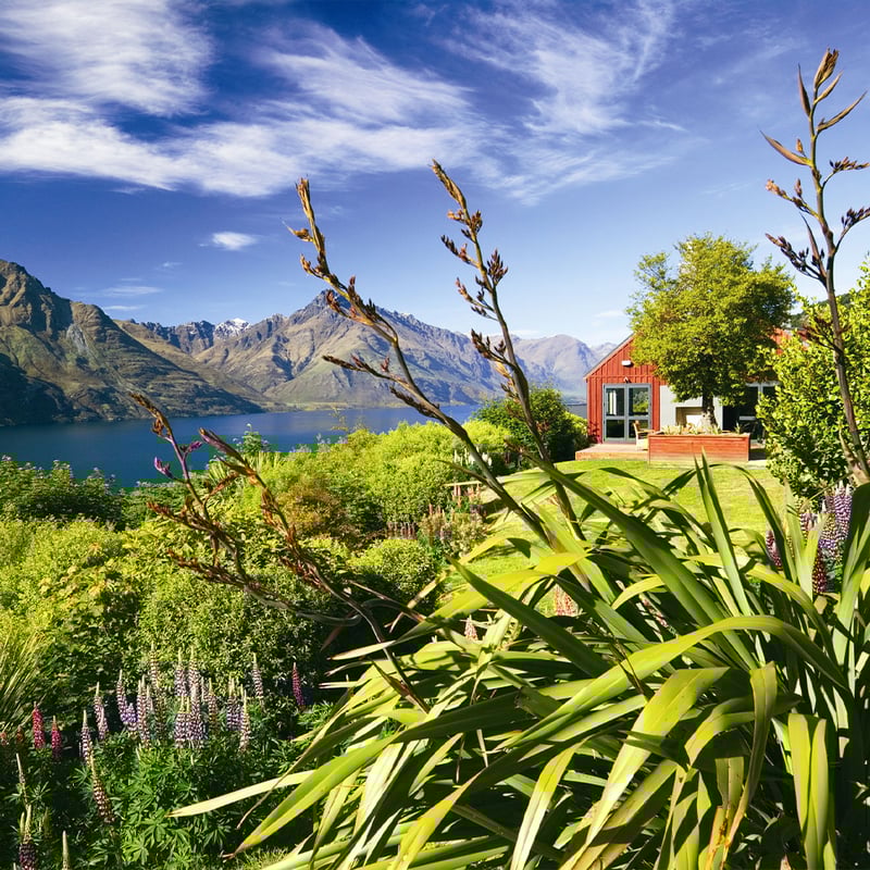 Timber, glass, and stone shape this 19-room retreat where every accommodation opens onto private terraces facing either The Remarkables or the peaks behind. Local designers Comber & Smith crafted interiors that feel bright and unfussy, while the stone Tower Suite captures both mountain ranges from its elevated perch. Evening canapés and wine precede dinners, with gourmet picnic hampers for those drawn to Wakatipu Lake, a five-minute walk away.