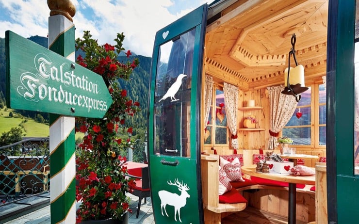 For more gourmet cuisine, the Hubertus Stube Restaurant is the perfect choice with its new Austrian cuisine and numerous culinary awards. But my favorite is without a doubt the smallest restaurant at the Jagdhof: a former cable car converted into a mini-restaurant with only 6 seats that serves fondues (reservation required). Unfortunately our stay is only for one night… but don't miss out on this experience if you plan to visit for a few days!