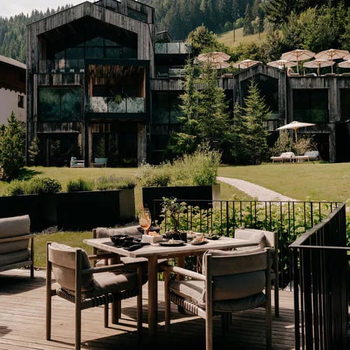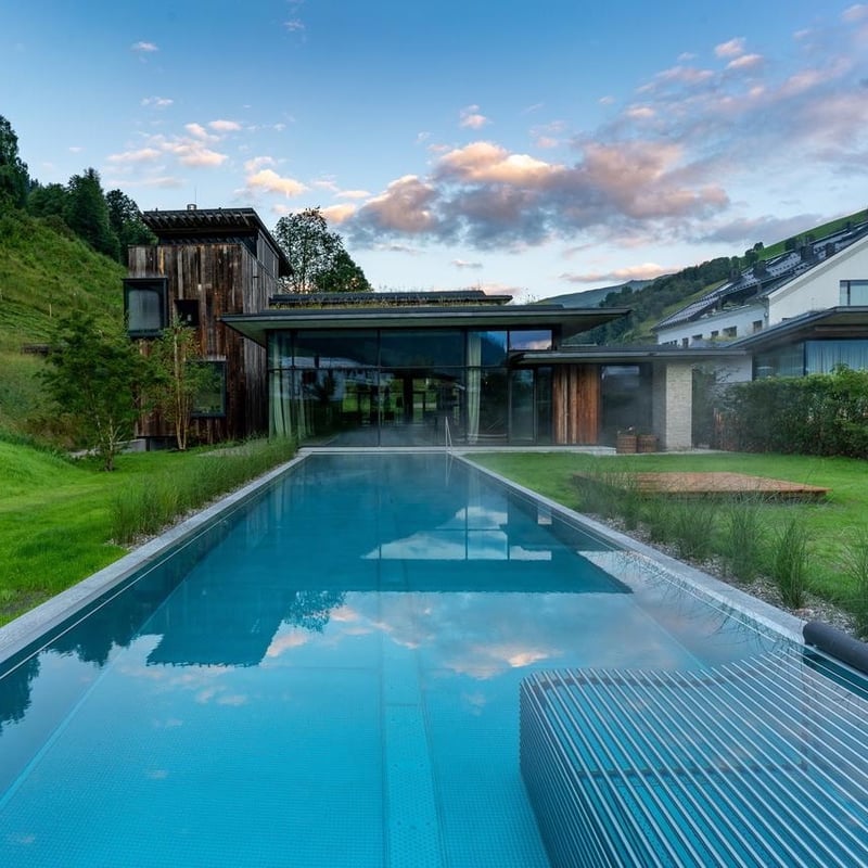 The Schmuck family has tended this 17th-century forest farmstead for over four centuries, planting the surrounding woodland themselves. Their waldSPA—Europe's first forest-inspired wellness concept—features outdoor saunas opening onto pine clearings and treatments steeped in alpine botanicals. A heated outdoor pool faces the Leogang peaks, with ski-in/ski-out access in winter. Families find purpose-built facilities including a 70-metre flume and forest kindergarten, while three restaurants champion seasonal, regionally sourced cooking.