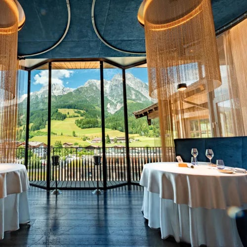 Ten seats, no more—Silva at Naturhotel Forsthofgut operates as one of Austria's most intimate fine dining rooms. Chef Michael Helfrich channels the surrounding forest through fermentation and smoking techniques, offering two seasonal tasting menus: the omnivore 'Wald' and vegetarian 'Wiese,' both available à la carte. Tableside beverage pairings, alcoholic or not, complete an experience designed for unhurried, focused gastronomy.
