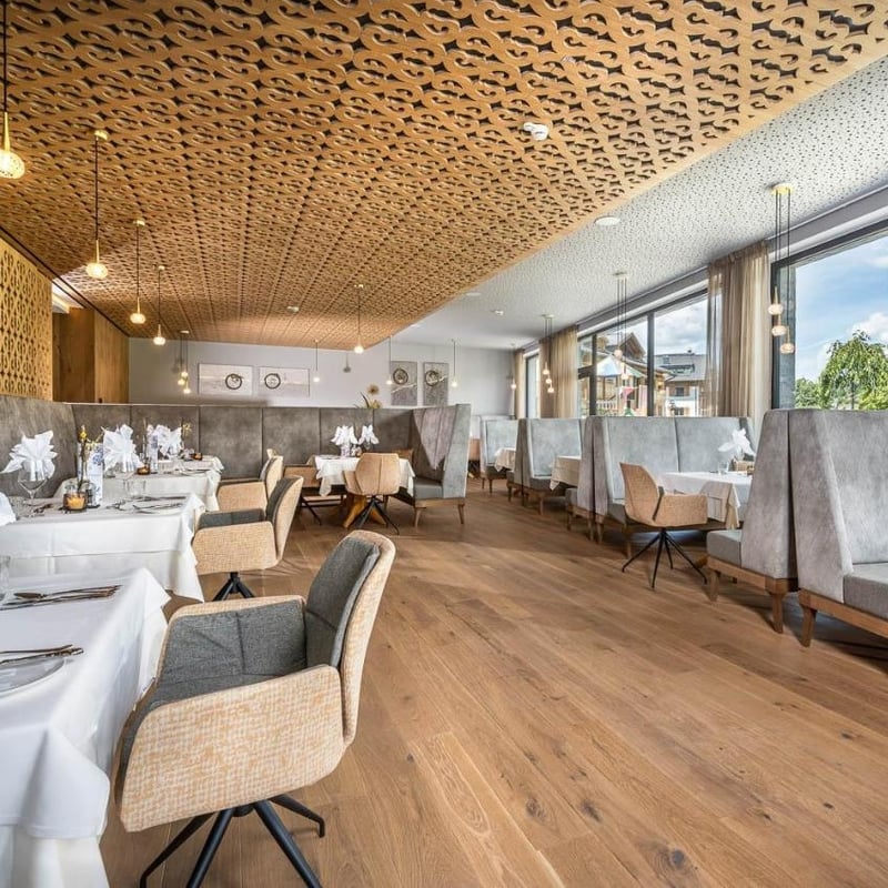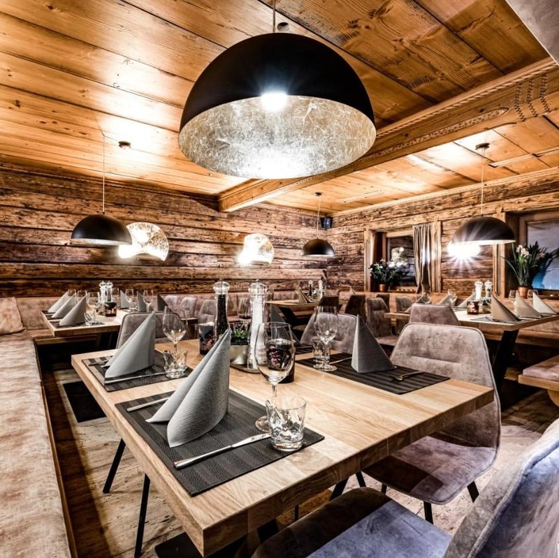 Five rustic wooden tables fill this intimate Alpine dining room at Naturhotel Forsthofgut, where warm wood panelling and live zither music set a distinctly regional tone. The kitchen champions local ingredients, with Pinzgauer beef Tafelspitz as the signature dish, preceded by a memorable bacon amuse-bouche. Staff in traditional dress navigate an impressive wine list spanning Austria, Germany, France, and Italy.