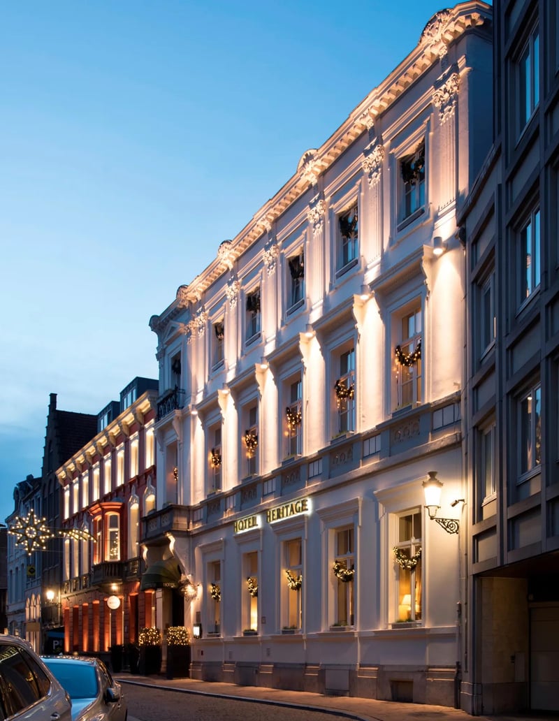 A 19th-century mansion steps from the Markt houses just 22 rooms dressed in Louis XVI elegance—wainscoting, chandeliers, marble baths—with a sundeck surveying Bruges' medieval rooftops. Fitness equipment occupies a vaulted 12th-century cellar; the Sothys spa offers hammam and sauna rituals. Restaurant Le Mystique, unchanged since 1869, draws from a 14th-century wine cellar below. Family-run and fiercely intimate.