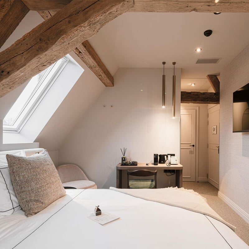 A Renaissance manor transformed into a twelve-room retreat, 't Fraeyhuis keeps its grand fireplace and exposed beams while adding moody photography and contemporary design. The glass-walled lounge opens onto a garden bar that draws Bruges locals alongside overnight guests. Bordering Minnewater Park and its swan-filled lake, this intimate address suits couples seeking a romantic base within walking distance of the medieval centre.