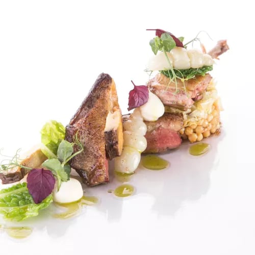 An 11th-century country inn on the outskirts of Bruges, Auberge de Herborist retains its original romantic fireplace while Chef Hanbuckers tends a flower-filled cottage garden visible from the orangerie and terrace. His classic cuisine places vegetables at center stage, presented with meticulous artistry alongside impeccable seasonal ingredients. The atmosphere suits unhurried lunches and intimate evening celebrations alike.