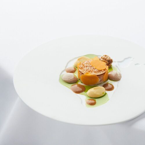 Geert Van Hecke, the 'Godfather of Belgian gastronomy' who maintained three Michelin stars for two decades at the Karmeliet, now presides over this intimate one-star seafood address. His signature scallops arrive lightly seared beneath a silky béarnaise enriched with carrot and orange jus, alongside an aniseed-laced vegetable millefeuille. Mireille orchestrates the dining room with commanding cheese trolley service, while an impressive art collection transforms dinner into something resembling an evening at the chef's private table.