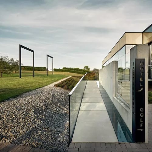 A striking modern structure appears to float above the fairways, its floor-to-ceiling windows framing the golf course beyond. Inside, chef Koen Somers works an open kitchen with exacting technique—his seabass, skin crisped to perfection, arrives alongside salsify, apple soufflé, and caviar, the butter sauce deepened with dashi and bonito. The exceptional cellar matches each course with precision.