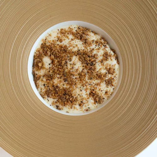 Chef Koen Verjans earns his Michelin star at Innesto through an obsessive focus on ingredient integrity, layering vegetable textures to amplify their natural intensity while sauces provide depth rather than distraction. His Dombes duck arrives with a robust speck and onion compote, beurre noisette hollandaise, and a playful potato medley. The sleek black-and-white dining room, accented with marble, suits the precision on the plate.