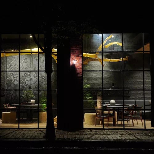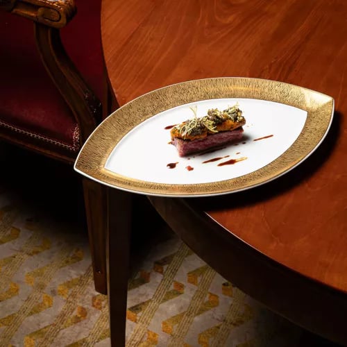 A seven-metre glass tree sculpture floats above the dining room at this two-starred address, setting the tone for Chef Jan Tournier's theatrical Modern French cooking. His signature pigeon leg undergoes double cooking—braised, lacquered in jus, then crisped over wood charcoal—arriving with basil-coriander gravy and silken potato-celeriac mousse. Asian inflections thread through dishes like oyster with plankton butter, while leather-clad interiors and lounge music cultivate an air of stylish secrecy.