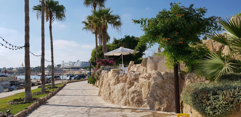Hotels cluster along Poseidonos Avenue and the coastal strip extending toward Coral Bay, where sandstone cliffs give way to sheltered coves. The dining scene reflects Cyprus's position at Mediterranean crossroads: mezze spreads of halloumi and loukanika, fresh fish tavernas in the harbour, and contemporary restaurants drawing on Greek, Lebanese, and broader European influences. Evenings tend toward the unhurried — wine bars pouring Commandaria and local varietals from the Troodos foothills, café terraces facing the sea. Spring brings wildflowers to the Akamas Peninsula nearby; summer, the loggerhead turtles that nest on Lara Beach.