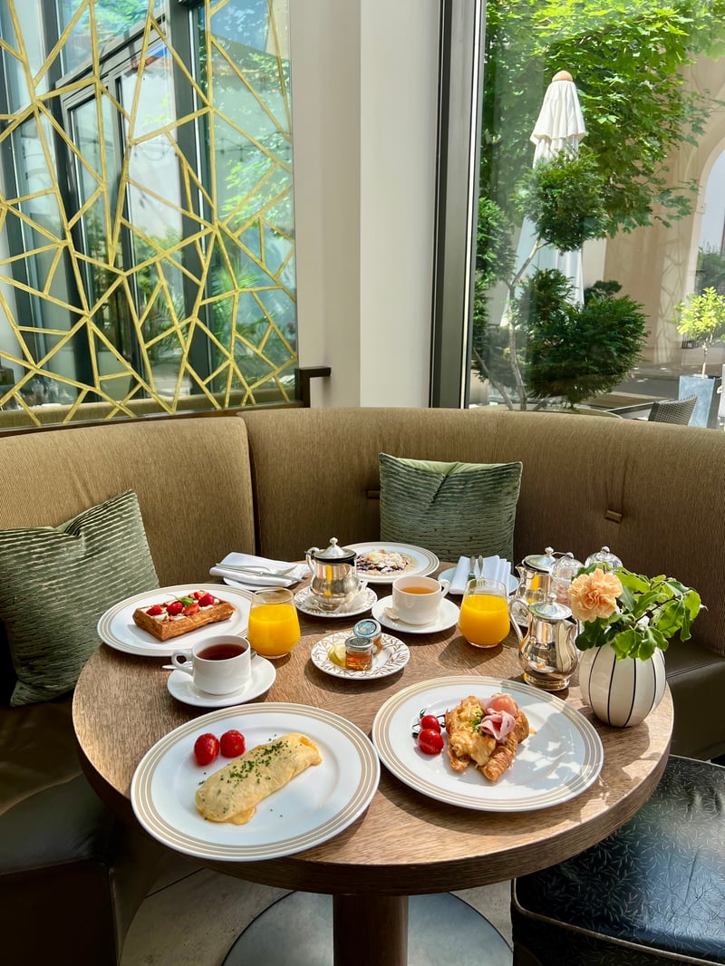 Breakfast at the Augustine is enjoyed in the main restaurant, in an elegant, hushed atmosphere. Served as a refined and deliberately limited buffet, it offers fresh bread, golden pastries, cereals, and homemade sweets. To this is added a generous à la carte menu, offering a wide choice of freshly prepared dishes: eggs Benedict, fluffy omelets, French toast, or light and crispy waffles. Attentive service and quality ingredients turn this morning ritual into a true gastronomic experience.