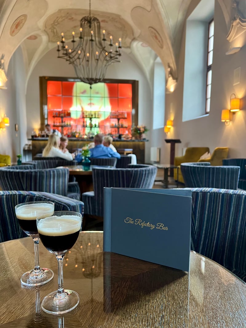 In the evening, the Refectory Bar, set in the former monks' refectory, transforms into a place of theatrical charm. Beneath its vaulted ceiling adorned with 19th-century frescoes, it offers a menu of signature cocktails inspired by the four archangels — Gabriel, Raphael, Jophiel, and Michael — enhanced with fresh herbs from the garden. Beer lovers can discover St. Thomas, first brewed by the monks in 1352 and today recreated by a local microbrewery following the original recipe.