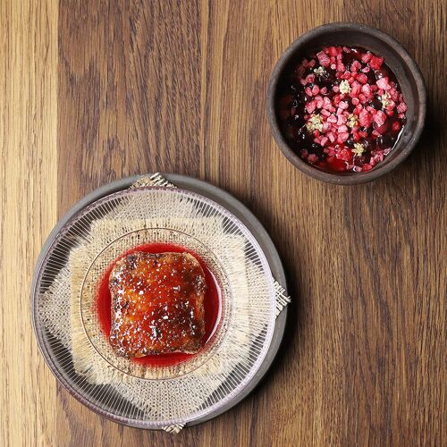 A 19th-century townhouse on a cobbled courtyard near Aarhus Harbour provides the handsome backdrop for this Bib Gourmand address. The kitchen builds on Danish produce with unmistakable French technique—roasted cod arrives Basquaise-style with clam sauce, gentle curry, and Granny Smith—while duck confit comes with crispy potatoes and bigarade sauce. An exclusively French cellar rounds out the quietly accomplished offering.