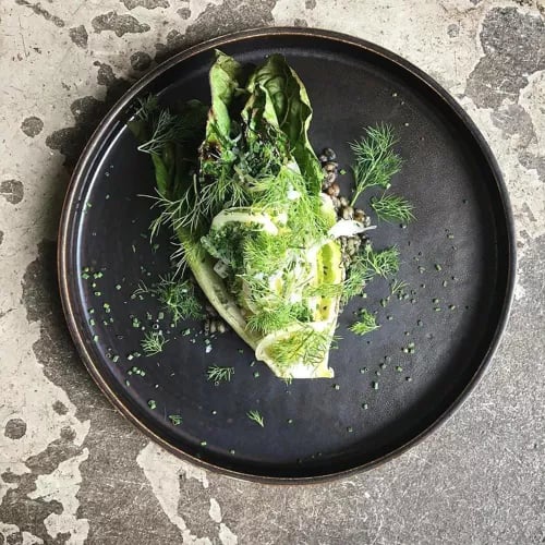 Beside the canal in Aarhus's historic quarter, this Bib Gourmand sibling to Michelin-starred Substans occupies a relaxed dining room of exposed brick and raw floors. The kitchen channels organic Danish produce through a French lens—cured hake brightened with capers, spice cake layered with figs and caramel. Summer brings pavement tables along the waterside, making it an easygoing yet accomplished choice for value-driven gastronomy.