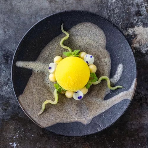 An elevated wooden cabin suspended among the trees of Munkebjerg Forest, Treetop delivers creative cuisine through panoramic windows that blur the boundary between plate and landscape. An open fire anchors the intimate dining room while chefs forage herbs, berries, and flowers from the surrounding woodland. The kitchen's commitment to sustainable gastronomy earned a Michelin Green Star—a fitting honour for cooking so deeply rooted in its terrain.