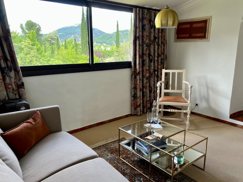 The rooms and suites offer a subtle balance between old-world charm and modern touches, with period furniture combined with some contemporary pieces. Each of the 18 keys reveals a unique character and carefully crafted decor, true to the Provençal spirit of the house. We stayed in a Junior Suite of about 35 m², which offered a large space including a lounge and bedroom, as well as a bathroom with bathtub. From its windows, we admired a soothing view of the gardens and surrounding hills, an enchanting setting that perfectly reflects the spirit of this family address.