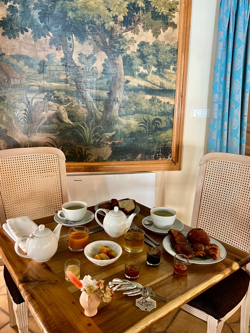 The breakfast at La Bonne Étape is a true moment of indulgence, where generosity and the quality of the products take centre stage. Served in the Bistrot Gaby dining room or in-room as desired, it consists of a wide assortment: fresh pastries, varied breads, homemade butters and jams, fruit salad, cereals, yoghurts, and a fine selection of cakes made by the pastry chef. Cold cuts, cheeses and eggs prepared on request complete this continental breakfast, accompanied by local fruit juices and a choice of hot drinks. A tasty moment to start the day well in the heart of Provence.