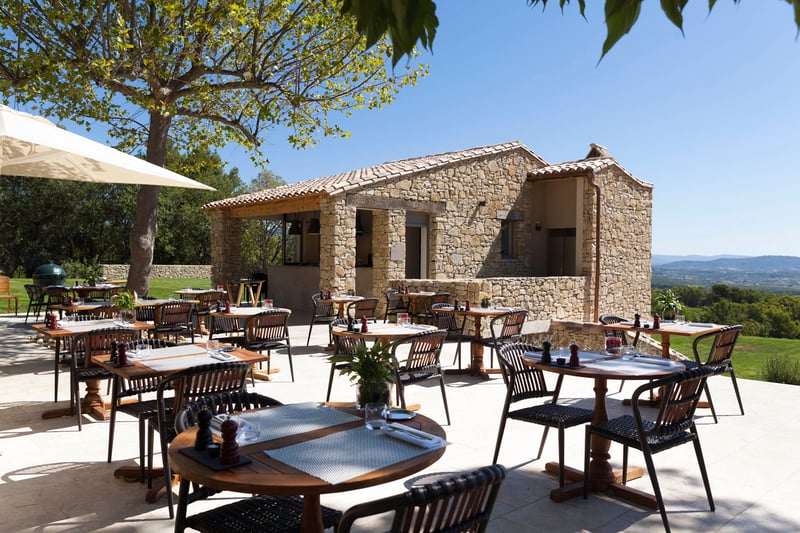 The five-course Tasting Menu began with a creamy bean appetizer with smoked duck breast, followed by foie gras. Next, the menu paid homage to the sea with a brill fillet, while more earthy flavors were represented by the Charolais beef with eggplant caviar, chickpea panisse, caramelized onions, eggplant chips, and gravy with olives. But the dessert was the true masterpiece for both our eyes and our taste buds: this trompe l'oeil of a chestnut was the perfect way to mark the beginning of autumn. For more casual cuisine, Le Bistrot du Mas is the place to go. Seated alongside the pool and in the hotel gardens, guests can dine on barbecue and grilled dishes.
