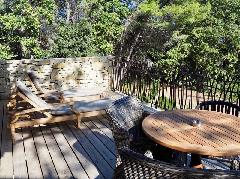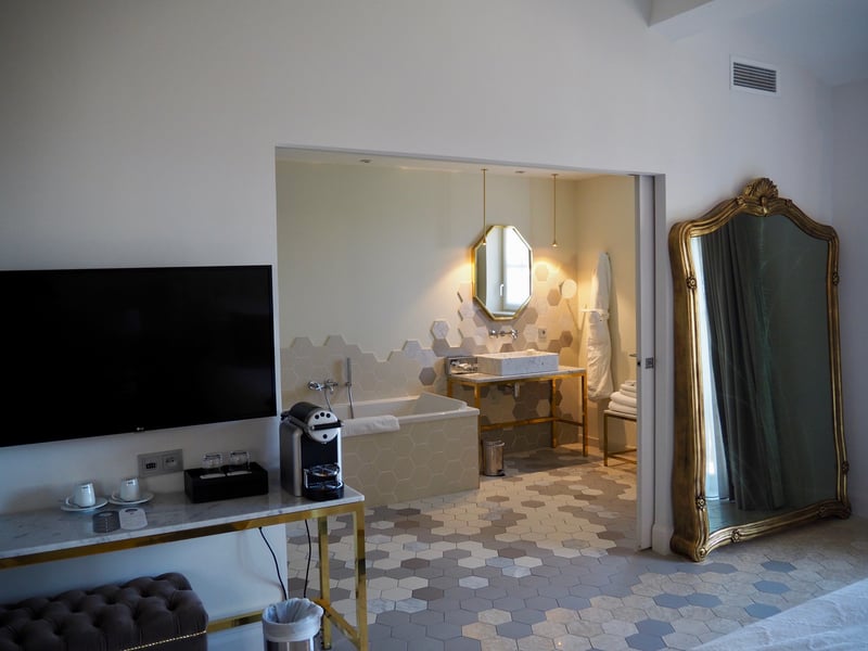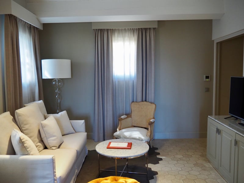 As soon as we arrived, we could tell that vacation was in the air! This feeling continued in the 47 rooms and suites. Unlike other five-star establishments in the region (like La Bastide de Gordes for example), the decoration here is more modern. The color palette leans toward neutral colors, with shades of white and grey offset by bright, colorful accents. The rooms feature a contemporary, elegant interior design with trendy furniture. Each one of the rooms and suites includes a balcony and, for the most luxurious suites, a private pool for an absolutely exclusive experience. We of course made the most of our terrace by taking our breakfast there first thing in the morning, all while enjoying the scenery.