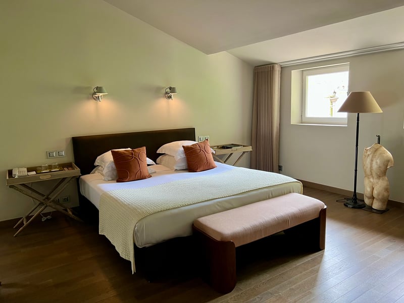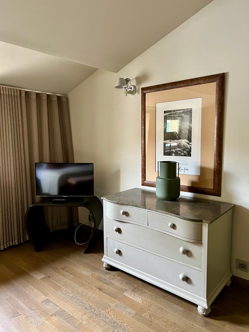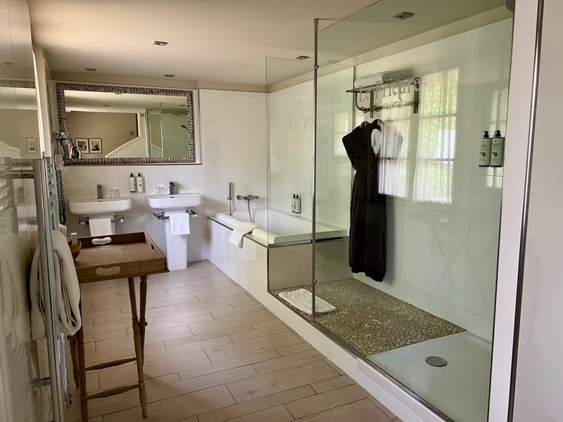 During our stay, we stayed in a Luxe room in the main house, Le Prieuré. Spacious and tastefully decorated, it perfectly reflected the house's spirit: a subtle blend of classical elements and contemporary touches. The minimalist furniture, natural materials, and soft hues created a calming, refined ambiance. The large bathroom, bright and elegantly arranged, enhanced this sense of comfort and well-being. Every detail seemed thoughtfully considered to offer a warm, peaceful, and truly elegant stay.