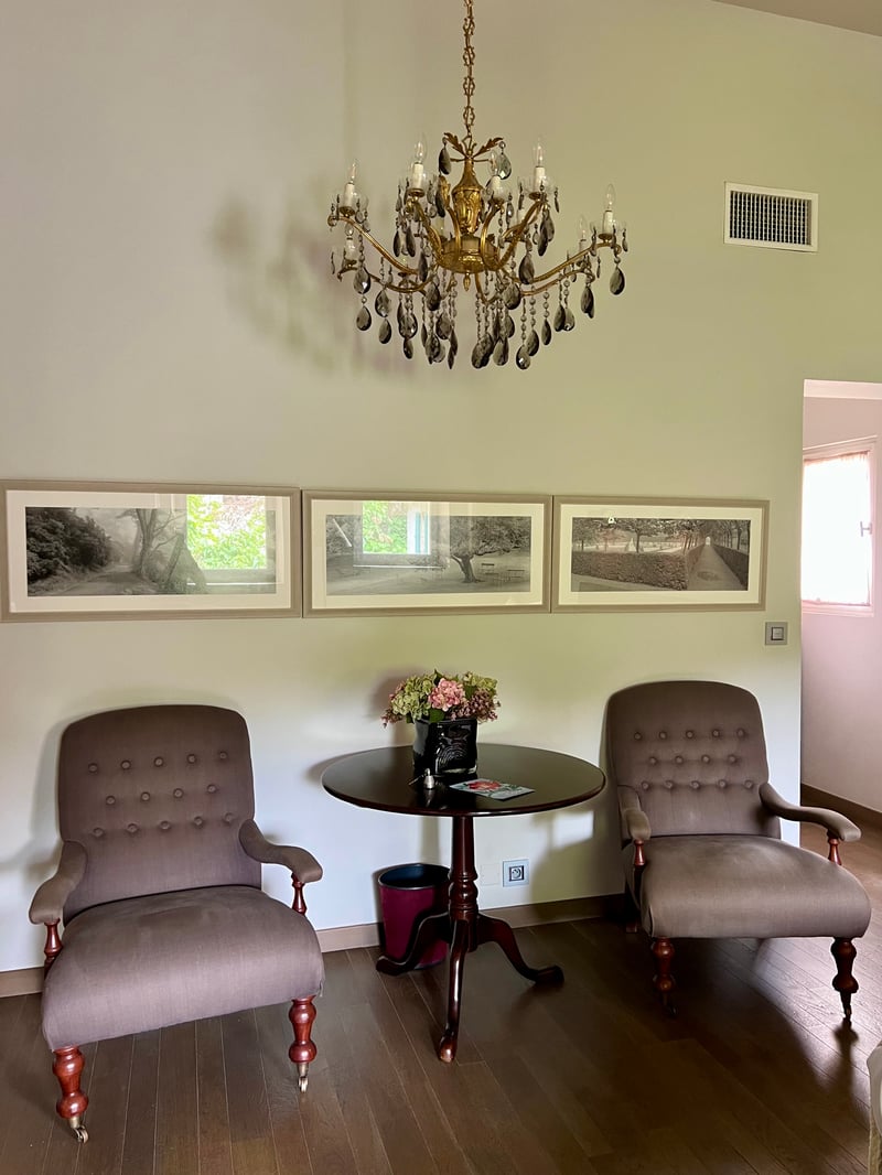 The style of Le Prieuré beautifully blends the authentic charm of a former convent with discreet, refined contemporary aesthetics. Under the guidance of Geneviève Charial, the décor mixes modern furniture, vintage finds, artworks, and personal mementos in a soft harmony. The living areas retain their original serenity while offering five-star comfort. The priest's garden, with century-old lime trees and cascading wisteria, extends this peaceful atmosphere, ideal for unwinding.