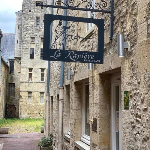 Occupying a corner where Rue St Laurent meets Rue des Bouchers, this Bib Gourmand address channels Normandy's larder with conviction—Bayeux pork, briny local oysters, aged Carrouges gruyère—through a bistronomic lens that prizes substance over fuss. Exposed stone walls and painted beams set a warmly lit stage for traditional French cooking that rewards regional curiosity without straining the wallet.