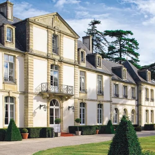 Directly facing Bayeux Cathedral, this 28-room boutique hotel occupies a modern building that echoes the medieval streetscape while housing Belle Époque–inspired lounges within. Bright rooms feature Moissonnier furniture and historically themed contemporary art, balancing classic refinement with modern comfort. A private garden offers quiet retreat, and the concierge arranges excursions to the D-Day beaches—ideal for history-minded travelers exploring Normandy.