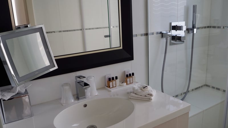 It is now time for me to discover the cocoon where I will be spending the next 24 hours : a magnificent Deluxe room with a view over the ocean. The large window offers an idyllic panorama over the Atlantic ocean that I never forget … My room is decorated with pearly wallpaper, white pedestal tables, a padded headboard and a beautiful touch of color with its 2 armchairs in blue velvet giving it a very refined and chic result. For those used to large spaces, you could opt for a junior suite (from 35 to 45m2) or a suite (63m2) with their vast teak wood terraces which offer a spectacular view.