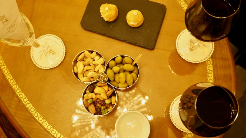 Before going out to dinner, we take a peek at the Imperial Bar. Our pre-dinner drink is accompanied by piano playing. The bar's ambiance is enchanting: subdued lighting, an excellent wine and cocktail menu, highly attentive personnel, and jazzy music for an extra-romantic moment! The food takes the place of honor thanks to contributions from the restaurant Villa Eugenie, as well as the Hippocampe during the summer season.