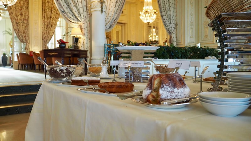 The following morning, it's finally time to try the hotel's breakfast! For me, this is one of the most important moments of my stay, as I'm uncompromising on the quality. I'm impatient as I hurry down to the beautiful restaurant in a rotunda which offers an exceptional panoramic view of the beach. As for the food buffet, it's filled with French staples like croissants, breads, cold meats, and cheeses, but also features local specialties like Basque cake with black cherry preserves. Other original foods include Gugelhupf, an Alsatian cake that I particularly love. After a copious breakfast, it's time for me to leave my gorgeous suite, knowing that I will no doubt miss the room's charm and beautiful view.
