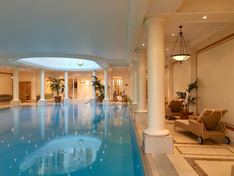 Time for a detour to the spa! Covering over 3000 m² (32,300 ft²), this is where you can surrender yourself to personalized and very in-depth spa treatments. Named after the Guerlain brand, it offers a relaxation space with a 15-meter pool, a jacuzzi, a steam room, and a sauna. The spa is very sophisticated; aesthetically it harmonizes perfectly with the hotel. It's also very brightly-lit, which is rather rare and appreciated. For a gourmet break, I head to the Eugenie Lounge where I can comfortably idle in my bathrobe on a deckchair, sipping Alain Milliat fruit juice and enjoying a sweet snack.