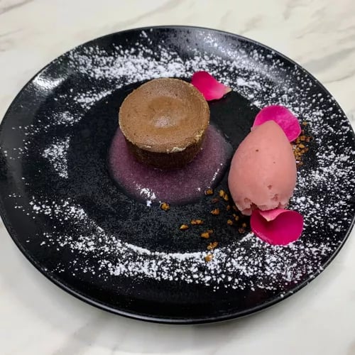 Two chefs trained under Michel Bras helm this Espalion institution, channeling Aveyron's terroir through creative, meticulously crafted plates. Local trout, calf sweetbreads, and Roquefort anchor a menu that moves from poached egg with pickled mushrooms and cold cappuccino to sage-crusted veal with wholegrain mustard mash. The signature baba, studded with pink pralines, provides a fitting finale to this regional celebration.