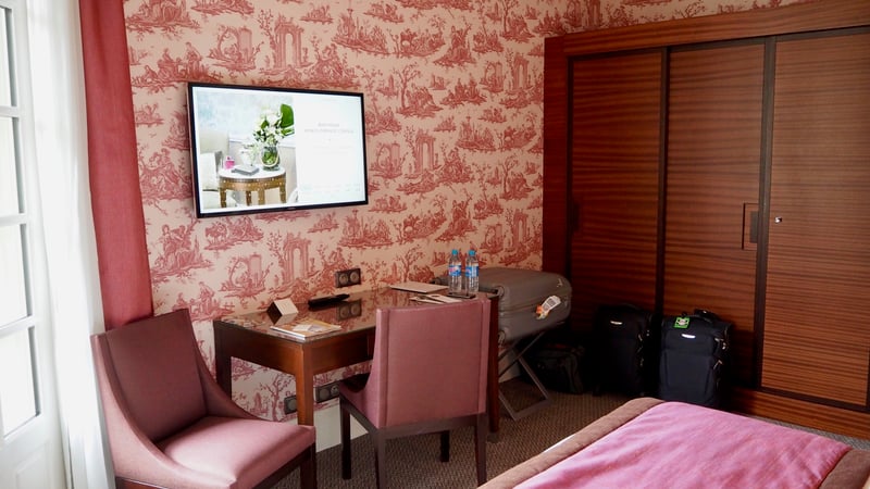 The hotel's 271 guest rooms and suites fall into several categories. The Superior Rooms are the smallest at 26 m² (280 ft²) (which is already respectable), while the larger suites are ideal for families. As for us, we've selected a Deluxe Room, 28 m² (300 ft²) decorated with the famous toile de Jouy pattern, a hallmark of this hotel. Updated and available in 5 different shades, this pattern lends a touch of freshness and tradition to the room, which perfectly combines antique charm and modern infrastructure (as seen in, for example, the room's minimalist bathroom with walk-in shower).