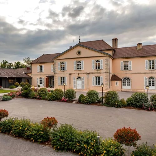 An 18th-century manor with a pink façade and Italianate columns surveys the Saône valley, its classical grandeur now housing a pared-back designer dining room. Chef Romuald Fassenet, trained under Jean-Paul Jeunet, channels deep knowledge of Jura terroir into refined plates—his AOC poularde de Bresse with morels, bathed in Château-Chalon sauce, demonstrates masterful command of vin jaune reductions.