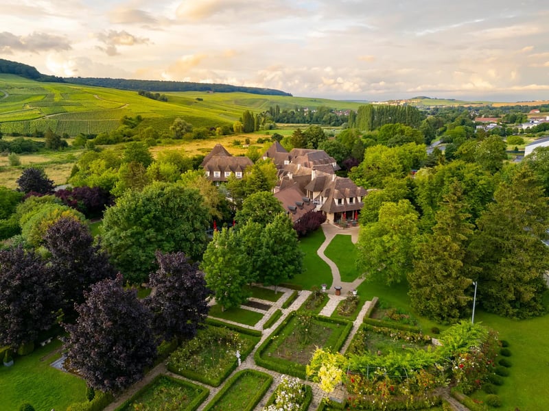 A traditional country house surveying Champagne's sloping vineyards, this 40-room retreat sits ten minutes from Épernay's legendary cellars. The gastronomic restaurant Alcôve frames the landscape through a dramatic bow window, serving terroir-driven cuisine. France's first spa featuring Maison Caulières treatments—crafted from botanical oils since 1714—complements a heated indoor pool, hammam, and rose-filled gardens where picnics among the vines await.
