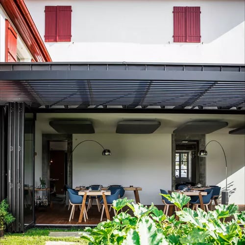 A 17th-century Basque farmhouse meets bold modernist architecture at this one-Michelin-starred table, where chef Cédric Béchade — shaped by years alongside Jean-François Piège at the Plaza Athénée — channels the terroir into refined, contemporary plates. Ibaiama pork, bluefin tuna, and local Ahyerre yuzu anchor a menu best savored on the terrace, with the Rhune mountain as backdrop. Midday brings a more relaxed bistronomy option at adjacent Café Basque.