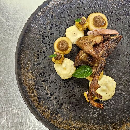 Chef Michel Moutroustéguy returned to his Basque roots after nearly fifteen years cooking across Chile, bringing global techniques to a village dining room in Irouléguy. The blackboard menu changes with the market, each dish built on local seasonal produce and finished with bold, deeply reduced sauces that reveal his worldly training. A Bib Gourmand address for weekday lunches and Saturday evenings.