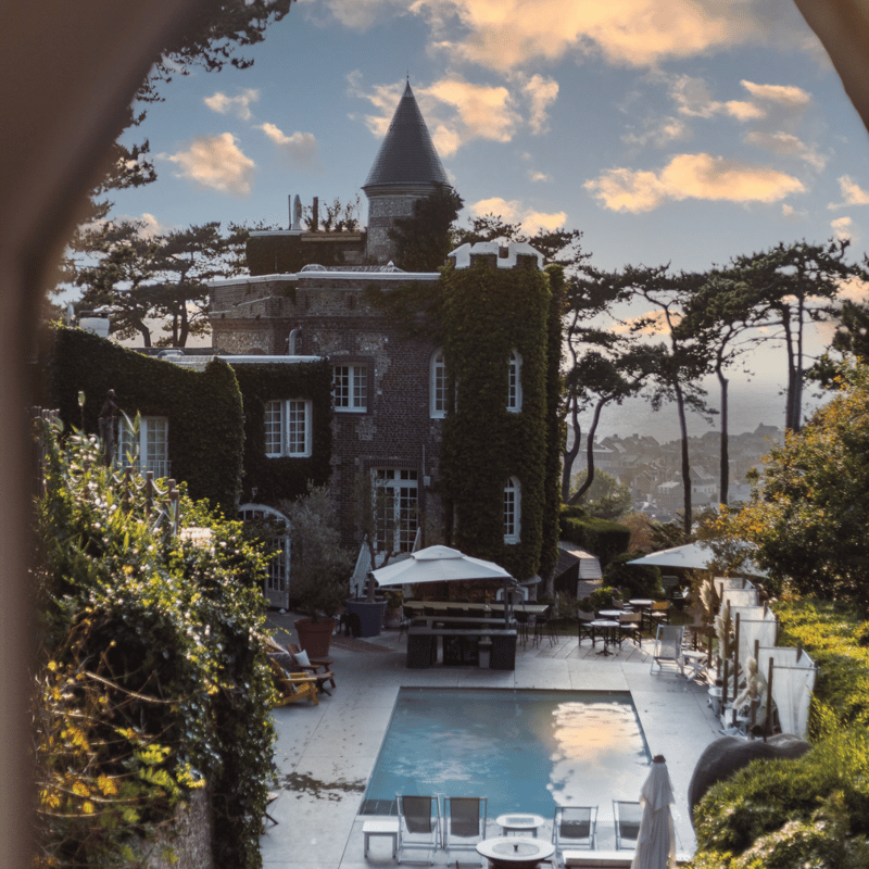 Occupying an 1862 Anglo-Norman château above Étretat's chalk cliffs, this 25-room domain spreads across three historic buildings, each guest room individually designed and named for figures like Monet and Sarah Bernhardt. Chef Killian Allain's Michelin-starred table unfolds beneath a Jean-Charles de Castelbajac fresco, while Racines explores Lebanese-inflected bistronomic plates. La Canopée rooftop features a private jacuzzi commanding 360-degree vistas of sea and stone, and Le Masdar bar captures the Channel's sunset theatrics.