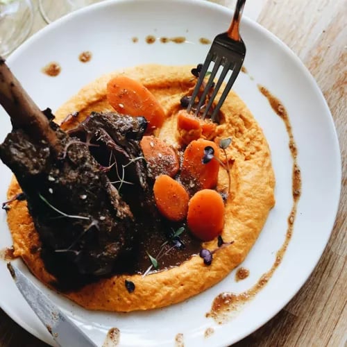 Sister to the Michelin-starred Domaine Saint-Clair, this colourful bar-à-manger channels its owner's Lebanese heritage through a Mediterranean menu built for sharing. Mezze showcases local ingredients—beef tataki with bottarga, grilled watermelon carpaccio with camembert espuma, cappuccino-style ceviche—before mains like croaker wrapped in vine leaf with spinach gnudi and arak-spiked bisque. A small wine cellar hosts tastings alongside the bottle list.