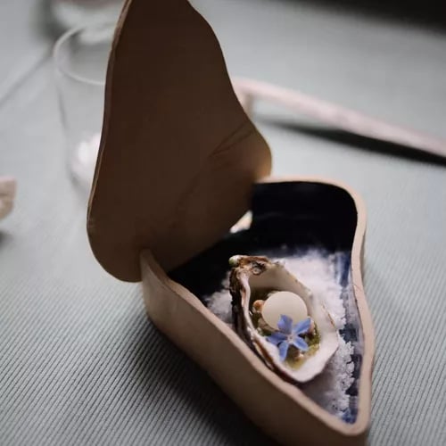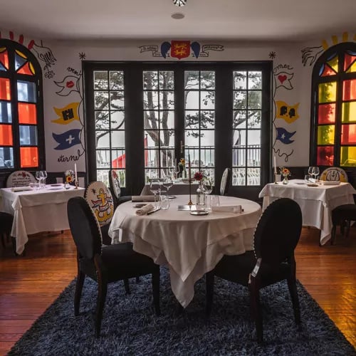 Chef Killian Allain's modern cuisine celebrates Haute-Normandie's dual terroir—land and sea—with gutsy sauces and seasonal produce that draw discerning diners to this 1862 manor perched above Étretat. Jean-Charles de Castelbajac's fresco-adorned dining room frames sunset views over the town's iconic cliffs, while Wednesday evenings introduce a three-course vegetarian menu reflecting the kitchen's responsible, evolving approach to coastal gastronomy.