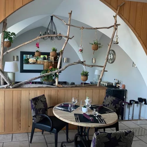 A short drive from Évian through the Pays de Gex, this village auberge near Divonne operates on a refreshingly simple premise: one generous tasting menu, no choices required. The kitchen takes a modern approach to fine ingredients, presenting them with quiet confidence in rustic-toned dining rooms. When weather permits, the terrace overlooking the church makes for an unhurried countryside meal.