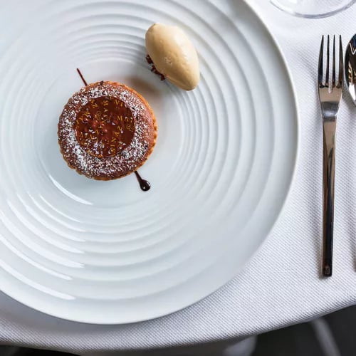 Fifteen years at Le Grand Véfour in Paris shaped the chef-owner who now helms this seasonal French table on the approach to Évian. The generous cooking draws on classic technique—fricassée of sweetbread with spring peas, free-range chicken brightened by lemon confit—while lake perch and Charolais beef tartare anchor a menu rooted firmly in terroir. Michelin-noted, unpretentious, and satisfying.