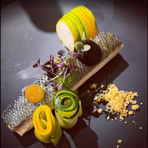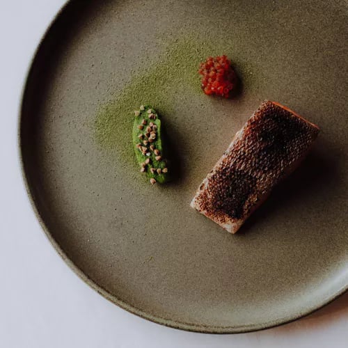 Chef Benjamin Breton, formerly of Geneva's Ritz-Carlton, earns a Michelin star at this Lucinges village address with a monthly set menu built on rigorously sourced local produce. Blue lobster receives the gentlest sear; ikejime Arctic char demonstrates precise technique; vegetables command equal attention through sublime sauces and striking contrasts. A glass-walled cellar showcases natural and organic wines within the bright, contemporary dining room.