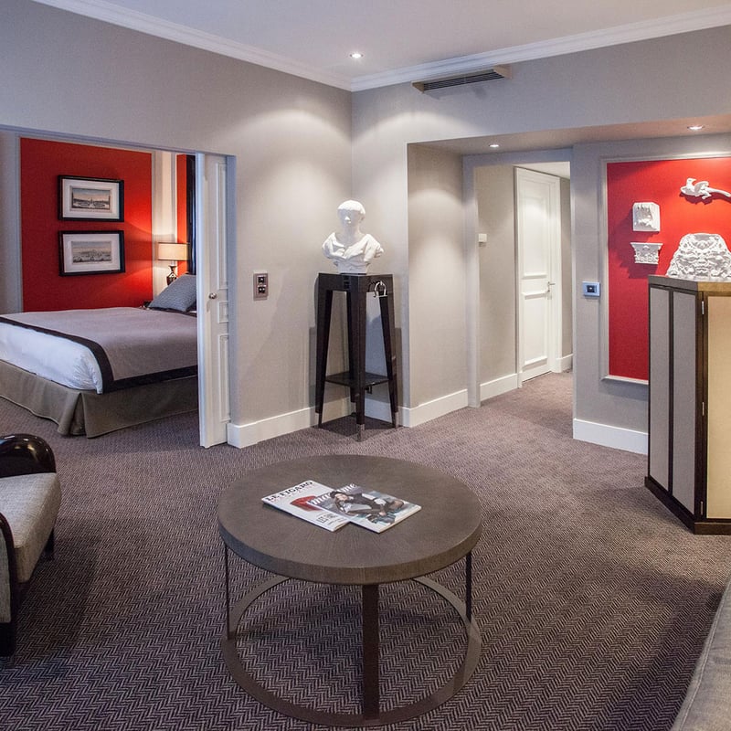 The Park Hôtel Grenoble overlooks the Parc Paul Mistral, balancing city convenience with green-edged calm. Monochrome rooms gain personality through crimson or turquoise accents, Clarins amenities, and Nespresso machines; suites expand into lounge spaces fitted for meetings and hung with notable artwork. A fitness center includes steam rooms, the wine cellar supplies curated bottles, and winter shuttles ferry skiers to nearby resorts, making this a practical base for both alpine pursuits and Grenoble's tech and university quarter.