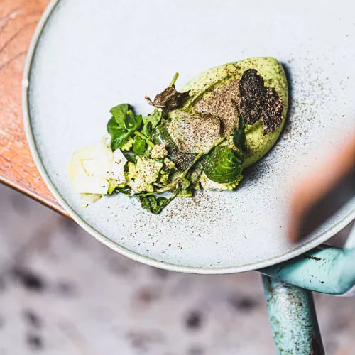 Stéphane Froidevaux returned Grenoble to the Michelin constellation in 2021 after a three-decade absence, working from a refined 19th-century hôtel particulier whose garden shelters foraging chickens beneath a century-old linden. Trained under Marc Veyrat, he layers wild alpine botanicals—lavender from La Meije, lemon verbena—into precise modern compositions that honour mountain terroir. A fully vegetarian tasting menu runs alongside gastronomic and brasserie formats, each shaped by seasonal ingredients and the chef's own foraged herbs.