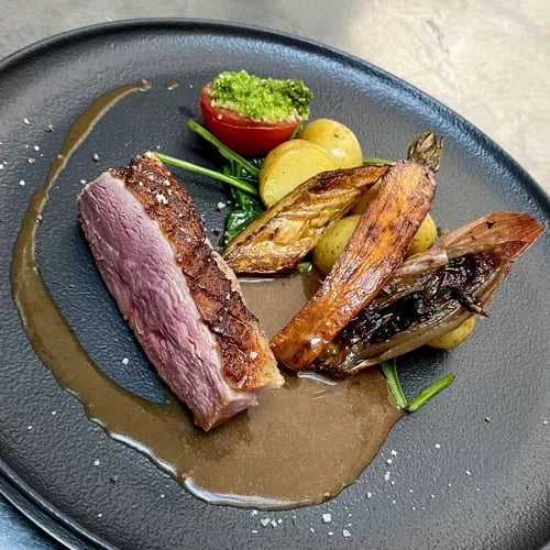 Occupying the outbuildings of a thirteenth-century manor on Guérande's outskirts, La Tête de l'Art delivers modern cuisine built on rigorously local sourcing. The kitchen's confident hand shows in dishes like asparagus paired with octopus under a canopy of herbaceous notes, or cod in hazelnut butter alongside delicate ravioli. A pear dessert balances sweet against sour with precision, closing meals on a memorable note.